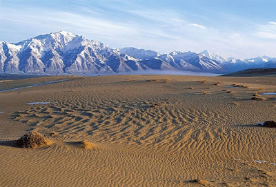 Pemandangan yang sangat aneh terlihat di sebuah Pegunungan Siberia yang mempunyai suhu sangat dingin. Di antara pegunungan yang menjulang tinggi berkarpet salju, terdapat daerah gurun pasir dengan warna kuning yang khas.